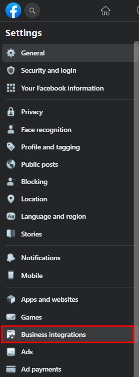 From the left hand menu select Business Integrations.